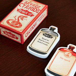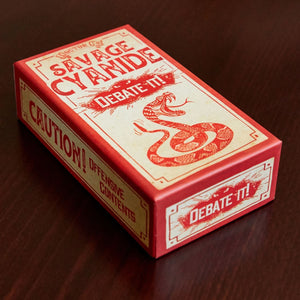 Test your ability to argue and persuade in a game of Savage Cyanide: Debate It! Where players take on a range of hilarious and whacky topics and argue their way to victory.