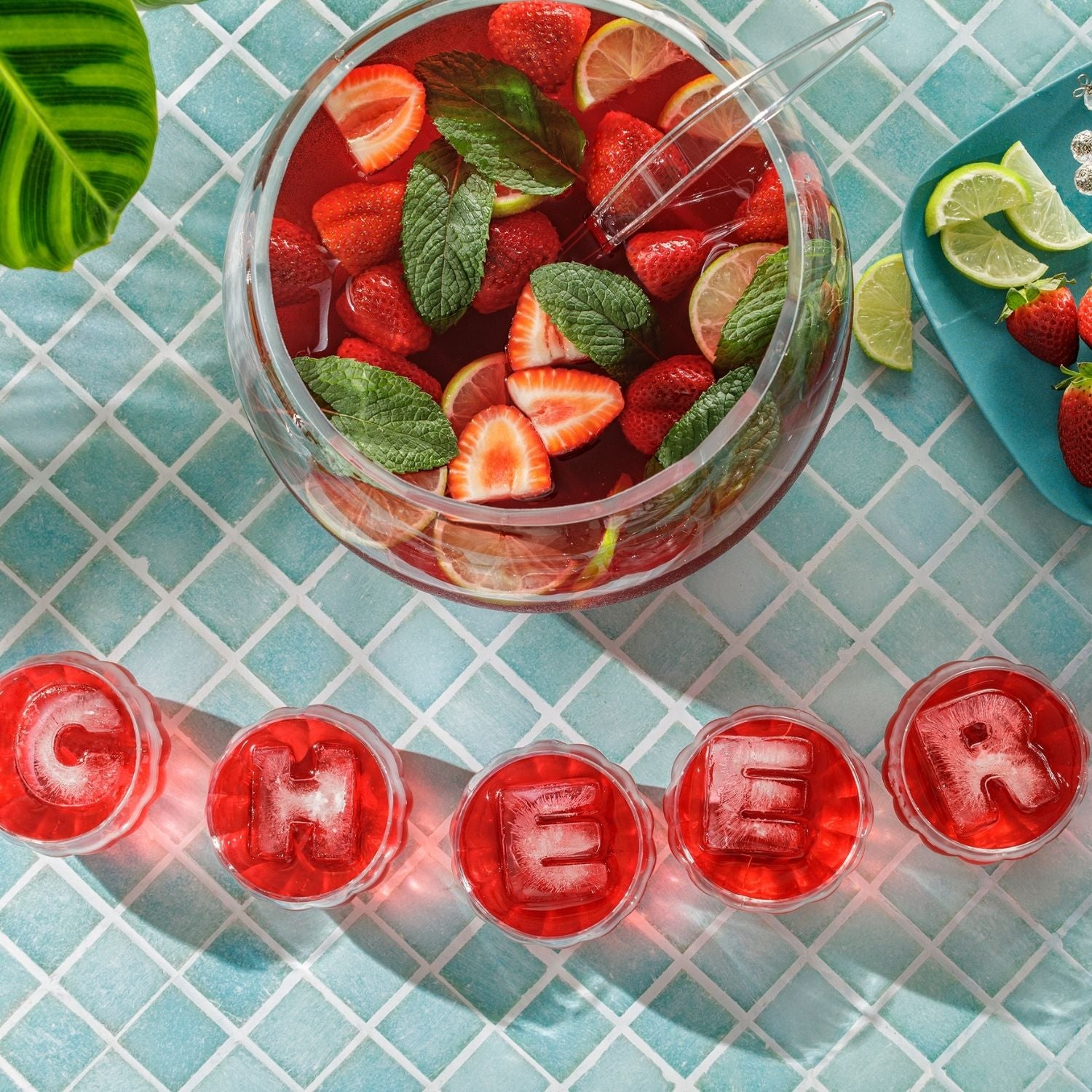 Each DrinksPlinks Letter Tray makes x 4 ice cubes Each ice cube fits a glass with 65mm diameter. 5 Year guarantee Australian owned and designed Food grade silicone Free of BPA, BPS, phthalates Dishwasher safe Safe to bake to 428°F I 200°C Use for chocolates, candles, bath bombs, crayons and more