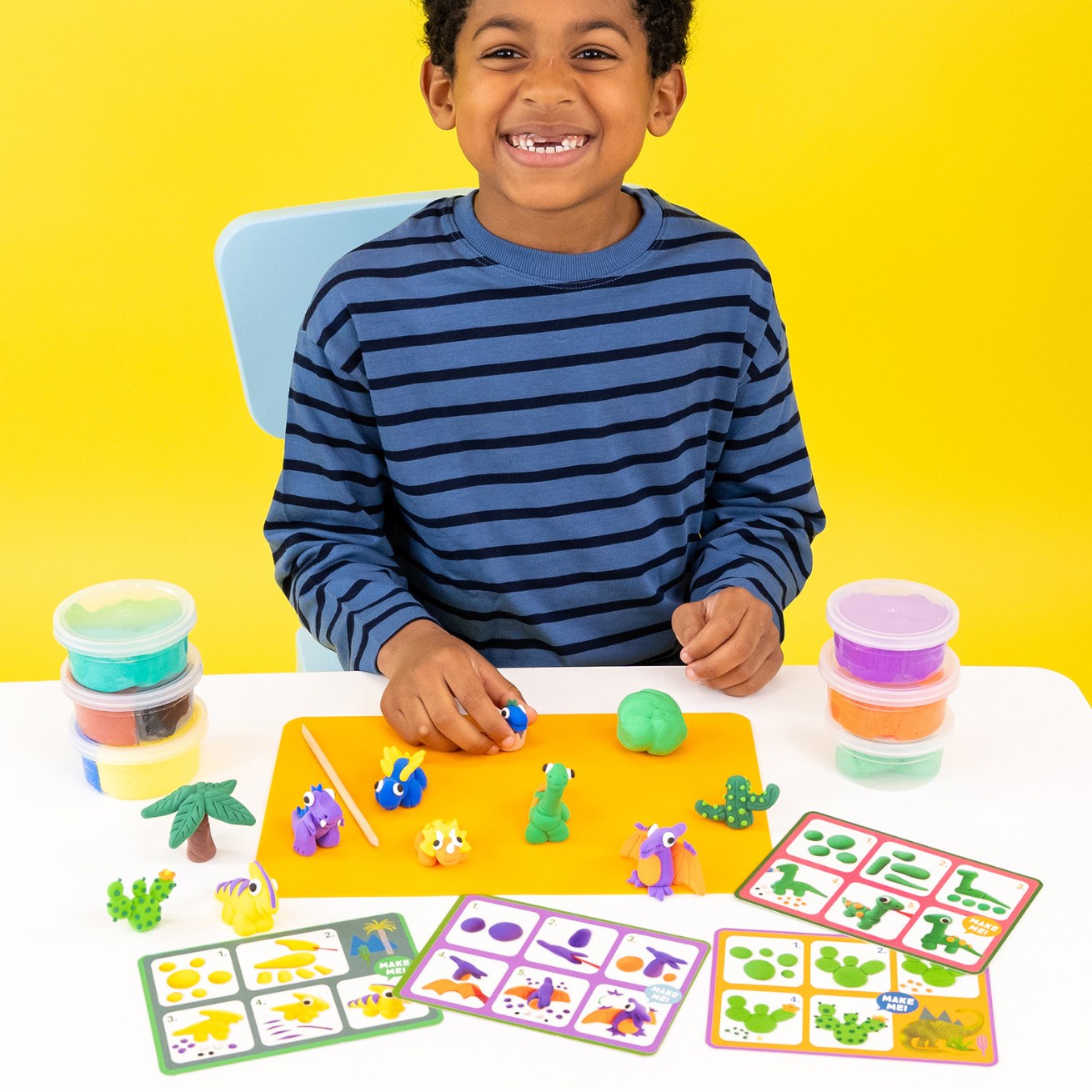 The step-by-step double-sided instruction cards guide children through each figure, building confidence as they learn new sculpting skills. Once complete, the inside of the box transforms into a colourful play scene - perfect for storytelling and display!