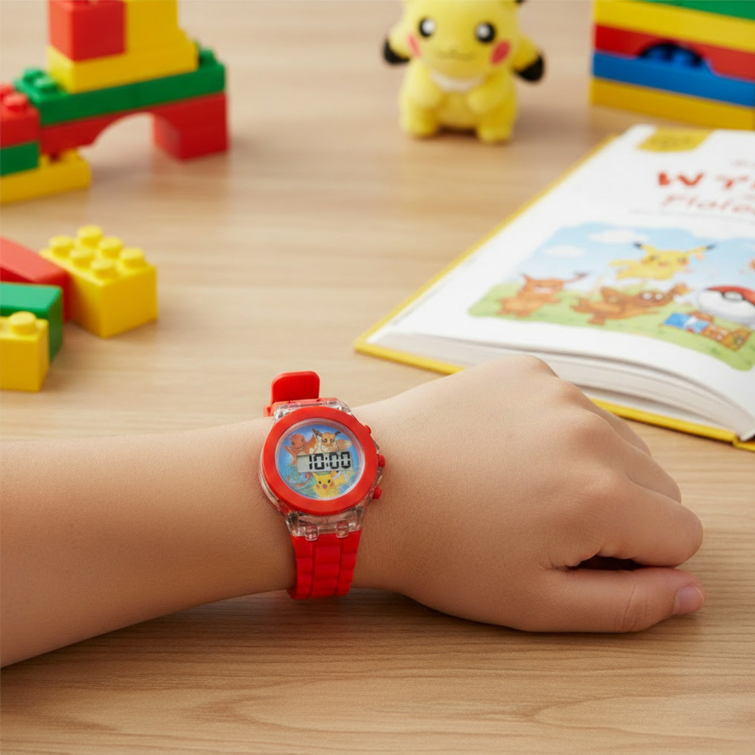 Capture the magic of Pokemon with our fantastic light-up digital watch, the ultimate accessory for any outfit. With a simple button press, watch the face illuminate in a delightful array of colours for 10 seconds!