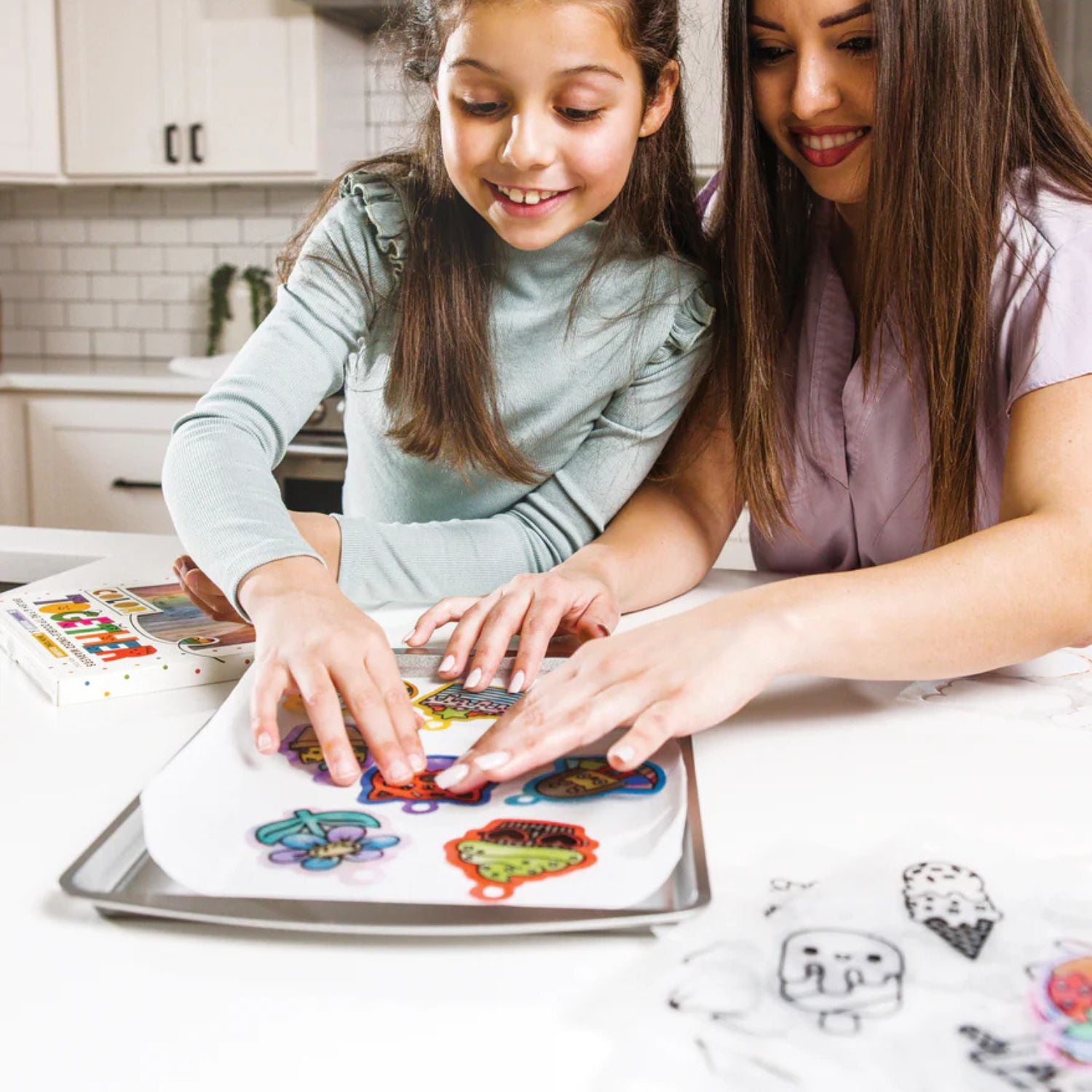 This all-in-one shrink art kit lets kids design their own adorable charms and watch them magically shrink in the oven. Just colour, bake, and clip onto a backpack, keychain, or bedroom door for instant personality!