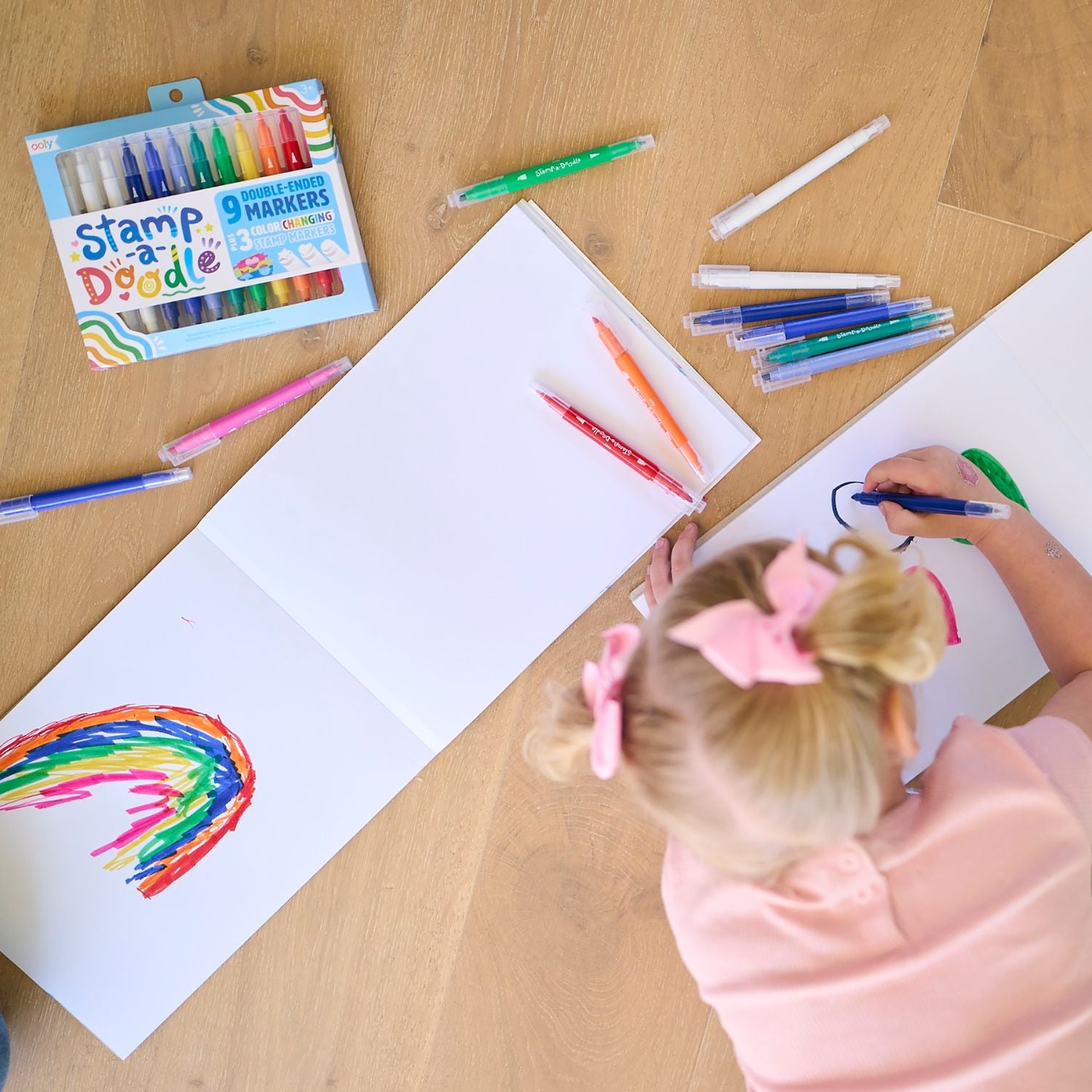 • Stamp-a-doodle set includes 9 double-ended markers and 3 colour changing stamp markers