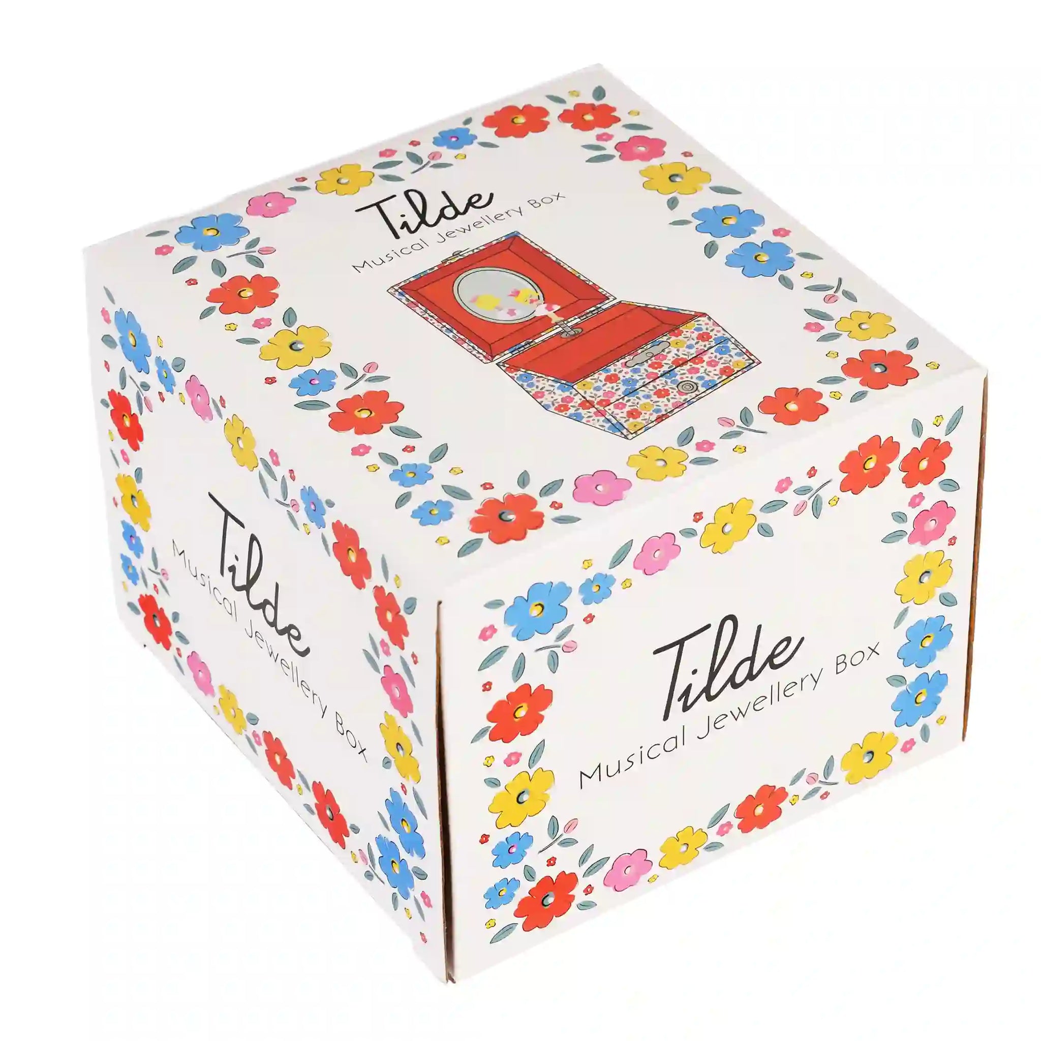 Delight little ones with this traditional jewellery box, featuring a colourful Tilde print. This children's jewellery box is ideal for storing precious keepsakes, hair accessories, jewellery and more. Simply lift the lid to reveal a twirling, musical princess.