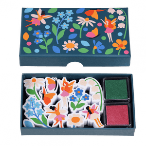 Get creative with this set of mini Fairies in the Garden stamps, including fairies, flowers and butterflies! Perfect for children's arts and crafts, this set also includes two water-based ink pads in green and pink.