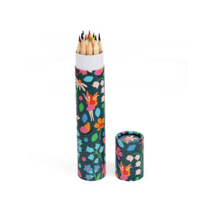 Set of 12 colouring pencils in a card tube, decorated with fairies and flowers from our pretty Fairies in the Garden print.