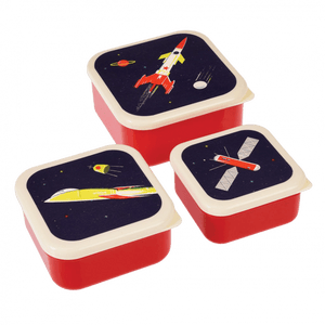 These nesting snack boxes are the stars of lunchtime, featuring colourful rockets and spaceships from our Space Age range.