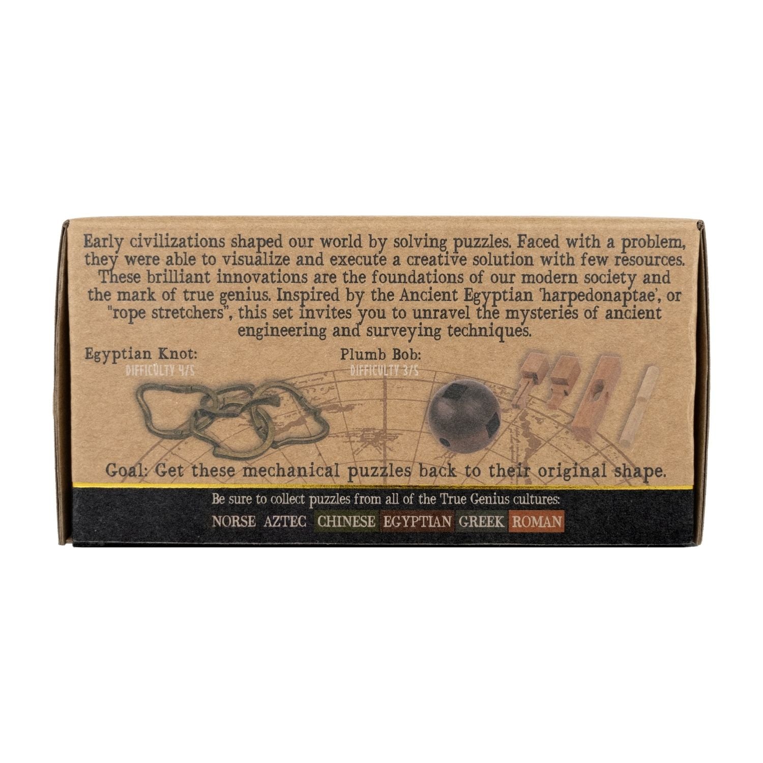 This unique set features two challenging mechanical puzzles -the Egyptian Knot (difficulty 4/5) and the Plumb Bob (difficulty 3/5) - designed to test your problem-solving skills and creativity.