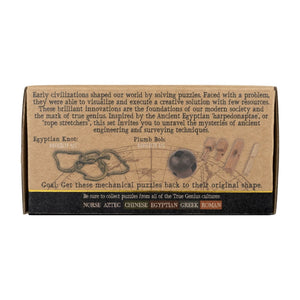 Can you solve the puzzles and return them to their original forms? Add this timeless challenge to your collection or gift it to someone who appreciates the genius of civilizations long gone.