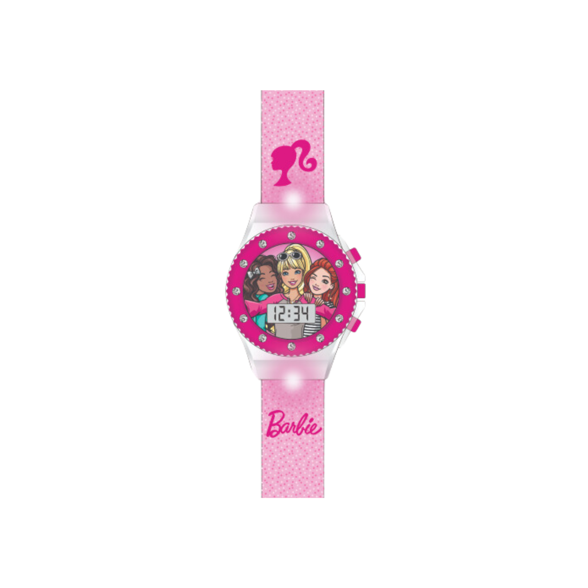 Embrace Barbie's charm with our fabulous light-up digital watch, the ultimate accessory for any outfit. With a simple button press, watch the face illuminate in a delightful array of colours for 10 seconds!
