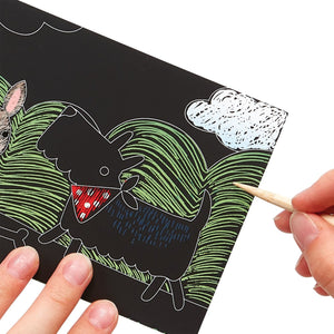 • Kit includes 4 different illustrated scratch cards (4 x 6 inches), 2 rainbow scratch cards (4 x 6 inches) and 1 wooden scratching tool