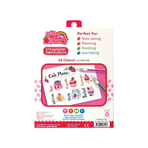 12 different colored gel pens are included in the set, but each one shares that unforgettable strawberry scent!