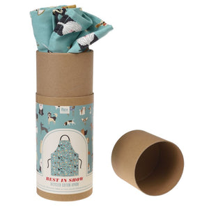A cotton apron for adults in blue-green, featuring dogs from our Best in Show print. Ideal for dog lovers!